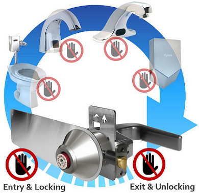 The restroom journey is a circular one that begins and ends with the door handle. In most single occupancy restrooms it is the lone obstacle in the way of completing a hands-free round trip.